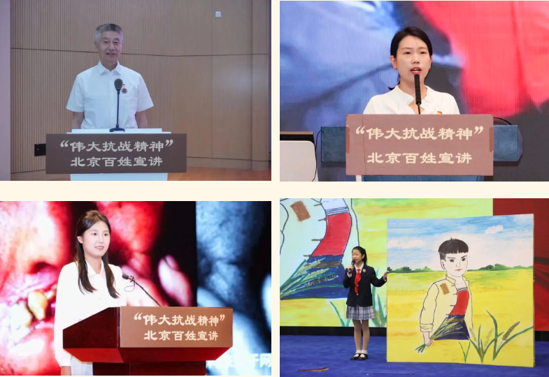 北京印刷学院学生杨舒惠讲述抗战时期《晋察冀日报》革新印刷技术,用“笔杆子”做武器坚持宣传抗战的故事;北京佑安医院医生扈彩霞深情回忆其爷爷扈金兰为守护“新中国金融摇篮”——冀南银行而壮烈牺牲的事迹,揭示了经济战线对支撑持久抗战鲜为人知的贡献。同时,宣讲展开抗日国际视角,海淀区苏家坨镇干部郑凯雯再现法国医生贝熙叶开辟自行车“驼峰航线”为根据地运送药品的国际主义精神;平谷区农业农村局范东明讲述平谷百姓冒死救助11名美国飞行员的感人故事,凸显了世界反法西斯同盟的深厚情谊和中国人民的博大胸怀。