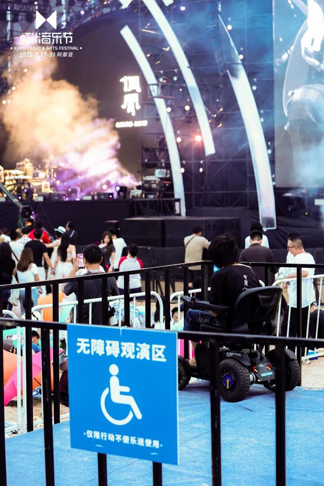 没错,那是音乐节沙滩旁的柏油路,笔直、平坦,被主办方设置为无障碍通道,方便如董宇一样的轮椅乐迷完成 10 分钟的舞台转场,路况极好。